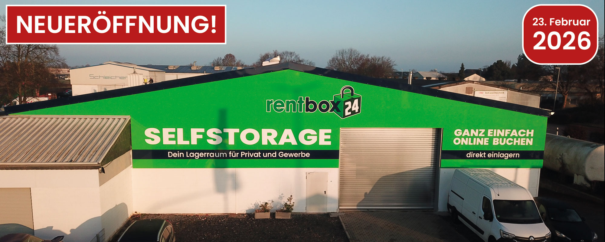 An unserem Standort in Heinsberg kannst du entweder direkt vor Ort über einen QR-Code oder hier über unsere Website deine Lagerbox online buchen. Die Nutzung unseres Buchungssystems ist unverbindlich bis zu dem Zeitpunkt an dem du deine Zahlungsdaten eingibst und die Buchung bestätigst. Falls du dir mit deiner Buchung noch unsicher sein solltest, kannst du dich auch von unserem Team beraten lassen. Hierzu rufe einfach in den Büro-Öffnungszeiten unter 02432-9024630 an. Sobald du deine Buchung erfolgreich abgeschlossen hast erhältst du alle wichtigen Infos direkt an deine hinterlegte E-Mail-Adresse. Sofern du eine speziellere Anfrage haben solltest, kannst du auch erst unser Anfrageformular unter "Beratung / Kontakt" nutzen. Wichtig: Wir haben weitere Standorte in Erkelenz (Outdoor) und Wassenberg (Indoor) mit Lagerboxen bis zu 25m² Grundfläche und 3m Boxenhöhe. Diese sind ebenfalls im Buchungssystem zu finden und buchbar.